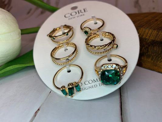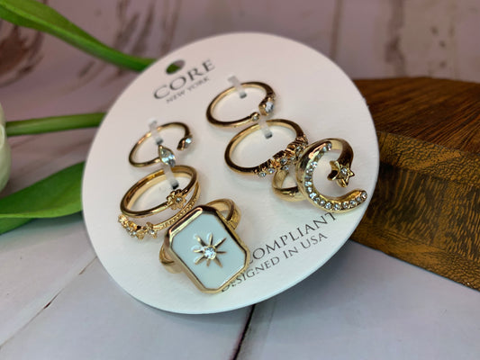CHANDRA CRYSTAL AND GOLDTONE 7 RING SET